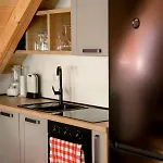 This apartment also comes with a full kitchen. A terrace invites guests to relax on.